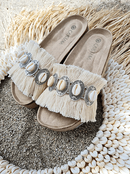 Descubre la tendencia bohemia inspirada en la playa con cayetana shoes, sandalias decoradas a mano en Chile.